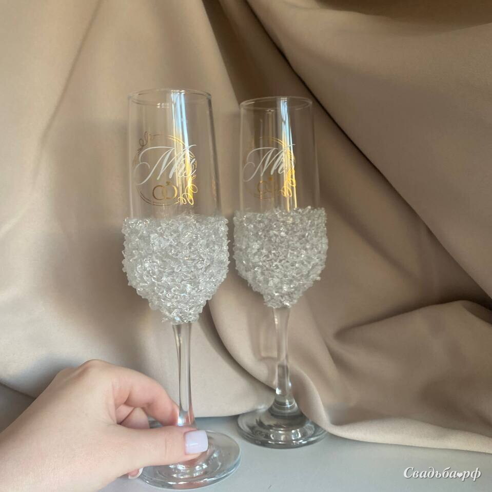 Бокалы ручной работы, вид бокалов можно сменить на индивидуальную гравирвоку.