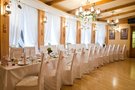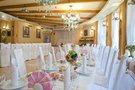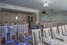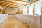 Это относительно новый банкетный зал ресторана. Он оформлен в бело-голубых цветах и рассчитан на 85 человек. Нижний банкетный зал идеально подходит для проведения торжественных свадебных мероприятий. По Вашему желанию зал может быть дополнен флористическим декором.