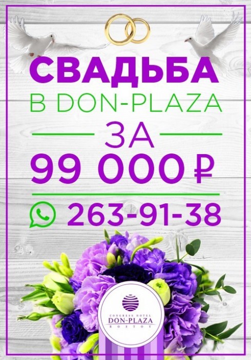 Конгресс-отель Don-Plaza — самое романтичное место для организации свадьбы в сердце Ростова. Расположение отеля в самом центре города создано для Вашего удобства и удобства Ваших гостей. Интерьер Don-Plaza создаст торжественное настроение и прекрасно подойдет для Вашей свадебной съемки. Витражный купол — небосвод, фонтан и золотая винтовая лестница — любимые места фотографов.