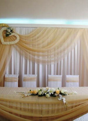 Для молодоженов оформление зала по их желанию, свадебная арка.