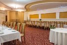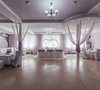 Банкетный зал рассчитан на 120 гостей. Цветовая гамма зала выдержана в гармоничном сочетании лавандового оттенка с белым. Он кажется легким и воздушным. Оформленный в светлых тонах зал, позволит задействовать любое цветовое решение.