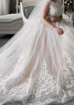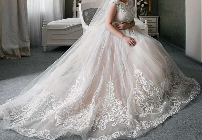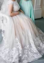 Продаю платье необычного цвета- капучино. Красивая спинка... застёгивается на пуговицы.... по верху и по низу вышивка... очень красивое. Платье на 46-48 размер... на большую грудь. На рост примерно 165. Покупалось в известном свадебном салоне г.Сочи. Платье после химчистки. В комплект с платьем идут боди (надевается под низ платья) и фирменный чехол. По интересующим вопросам пишите в WhatsApp. Реальной покупательнице ТОРГ.