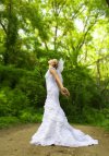Платье сшито по эксклюзивному эскизу, такую модель Вы в салоне не увидите. Ткань – шелк, сверху – итальянское рельефное кружево, оборочки и крылышки сделаны из органзы. На спинке небольшой, но очень элегантный вырез. застёжка – Сваровски.