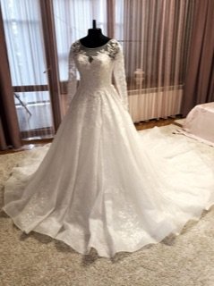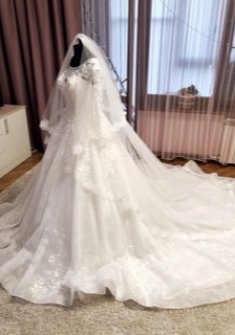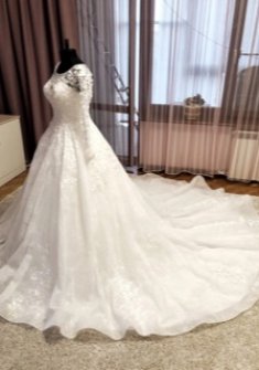 Свадебное платье надевалось один раз, в день свадьбы. Платье с корсетом, имеется красивый шлейф. Платье после химчистки.