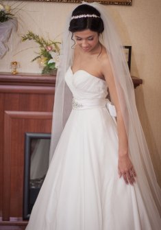 Платье английского дизайнера JUSTIN ALEKSANDER,цвет айвори. Шлейф пристегивается к платью,одевалось один раз. Перчатки и юбка на 2 кольца в подарок (ремень не продается)Куплено в салоне "Лансье"
