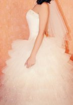 Продам пышное платье цвета Айвори, на 3 кольца. Корсет на атласной шнуровке, платье после химчистки. Очень красивое в оригинале,корсет в меру расшит камнями и бусинами, все видно на фото. Уместен торг. Есть еще под него туфли 37 размера, и меховая накидка.