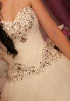 В этом королевском свадебном платье, украшенным крупными дорогими кристаллами, любая невеста будет выглядеть просто великолепно. Если Вы хотите быть похожей на принцессу, то с помощью этого шикарного свадебного платья ваши мечты станут реальностью. Размер S-M (42-46). Цвет ivory. На рост 175-180 см под каблук. У меня 176, каблук был 6 см. Если вам нужно меньше подрежут его в любом ателье за 15 мин. Платье одевала 1 раз, затем оно прошло чистку. В идеальном состоянии.
