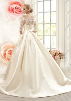 Свадебное платье Neveblue-bridal. Размер 40-44. Корсетное платье. Основная ткань - атлас. В дополнении к платью - кружевное болеро. Юбка выложена мягкими складками. Дополнительный сюрприз для невесты - спрятанные по боками кармашки. Шлейф по всей длине украшен атласными пуговичками. Длина шлейфа 50 см. Цена магазина - 55 000 руб. Платье после химчистки. Продам за 40 000 руб, возможен торг.