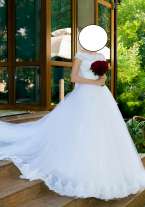 Размер: 42–44 (S). Продаю платье, размер 40-44. Вместе с платьем отдаю кольца (на подъюбнике есть маленькая дырочка), так же отдаю перчатки и если есть желание, то отдам еще и фату. Платью требуется химчистка. 8-918-542-06-02 Ксения.