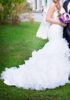 Продаю счастливое свадебное платье. Торг! Оно помогло мне обрести свою любовь! Пусть поможет найти ее Вам! Чудесное платье жемчужного цвета с переливами и стразами и аккуратной вышивкой. Размер 44-46. Корсет регулируется. Надевалось 1 раз, первый и последний для меня)) после химчистки. Сказочный шлейф, около одного метра, с петелькой для аккуратной поддержки. Силуэт "рыбка". Имеется чехол. Девочки! В подарок отдаю туфли (39 р.) и цветы в волосы!!! Будьте счастливы!!