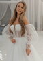 Свадебное платье из новой коллекции. Стильный полупрозрачный корсет в бельевом стиле выполненный из блестящего глиттера, прекрасно смотрится с воздушным съемным рукавом, который можно снять в любой момент. В меру пышная юбка из многослойного мерцающего фатина плавно переходит в шлейф. Такая модель идеально подойдет для чувственной натуры.