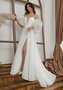 Прелестное воздушное свадебное платье из новой коллекции Luxery. Открытый декольтированный корсет и юбка сшиты из мерцающего глиттера. Утонченные линии корсета с глубоким вырезом детально подчеркивают фигуру невесты. Многослойная юбка привлекает своей лаконичностью и легкостью, также дополнением является высокий разрез. Образ дополнен нежными мерцающими рукавами.