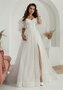 Прелестное воздушное свадебное платье из новой коллекции Camellia. Открытый декольтированный корсет сшит из мерцающего кружева. Утонченные линии корсета детально подчеркивает фигуру невесты. Пышная , объемная юбка с разрезом вдоль ноги привлекает своей лаконичностью и легкостью. Нежные мерцающие рукава создают образ платья для принцессы. Все это делает образ романтичным, утонченным и торжественным.