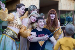 И в отличие от других ведущих на моих праздниках можно сделать костюмированное шоу с участием гостей, костюмы красивые и яркие гости с удовольствие переодеваются и быстро входят в образ — “цыганский табор”, “восточные красавицы”, “кан-кан”, “танец маленьких лебедей", “гавайская вечеринка”, “пираты”. Во время музыкальных пауз появляется — очередной костюмированный сюрприз для молодоженов. Получаются красивые, яркие, незабываемые фото.