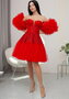 Яркое и роскошное вечернее платье. Пышная юбка, объемные воздушные рукава из ярко-красного фатина, элегантный корсет из красного глиттера, дополненный изящной драпировкой. Эта модель смотрится дорого и роскошно, ярко и незабываемо!
