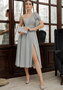 Экстравагантная модель из мерцающего глиттера. Особенность платья – драпировка по лифу переходящая на плечо, а также бант, добавляющий образу еще больше пикантности. Драпированный пояс подчеркнет талию, а разрез будет акцентировать внимание на стройных ножках.